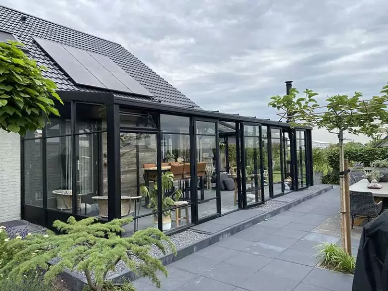 Bij een goed ontworpen serre is daar rekening mee gehouden. Onze serres zijn standaard voorzien van HR++ glas. Dat houdt de warmte beter vast in de winter en zorgt voor minder hitte in de zomer. Daarnaast zijn er slimme opties voor ventilatie, zonwering en verwarming. Daarmee creëert u een stabiel en gezond binnenklimaat voor uw planten.